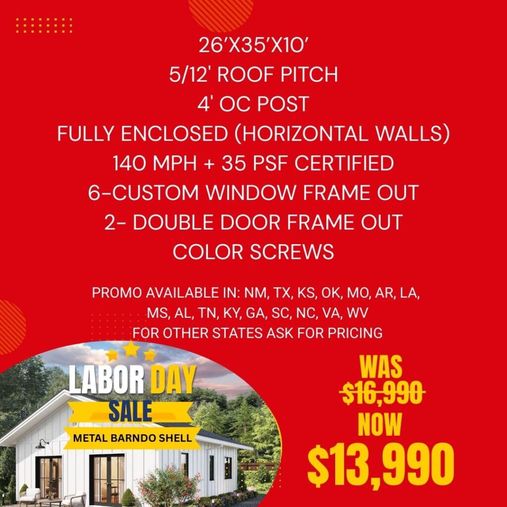 Labor Day Sale - 26x35x10 Barndo Shell
